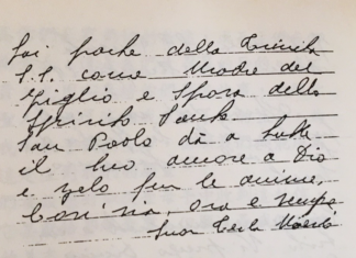 有一天,我看到羅姆姆在聖堂裡,她平安地坐著,手拿著玫瑰唸珠,靜靜地觸摸著它。她在那裡,一句話都沒說,不知道她在想什麼,可能在跟天主或是聖母瑪利亞說話吧!我在無意之間也沉浸於平安和神聖的氛圍裡,感覺到特別的平靜,就好像在天主懷抱裡那樣。