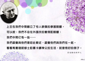 「有我的恩寵為你夠了,因為我的德能在軟弱中纔全顯出來。」(格後十二8)