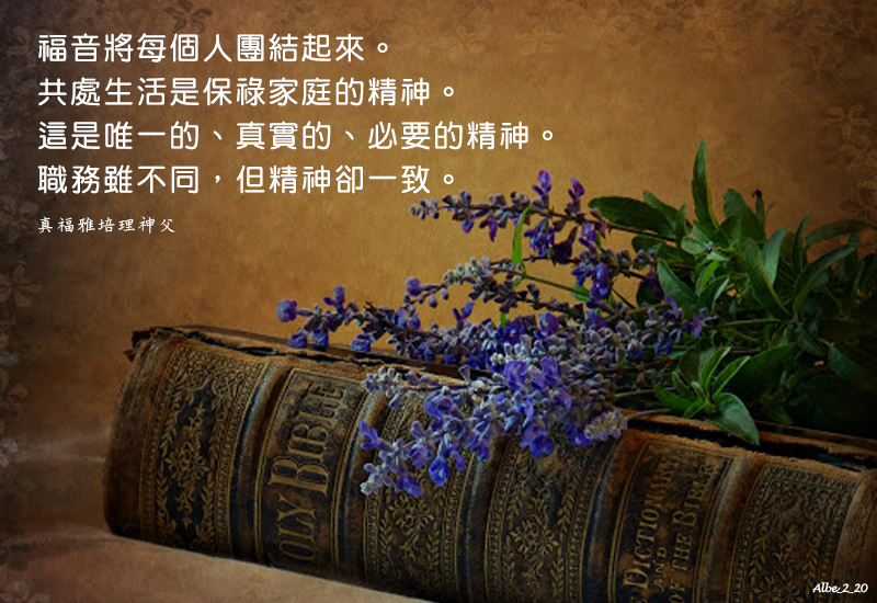 The Gospel unites everyone; lived integrally it means Pauline spirituality; which is the one, the true, the necessary spirituality for all. Different occupations, but one spirit (UPS III,188).