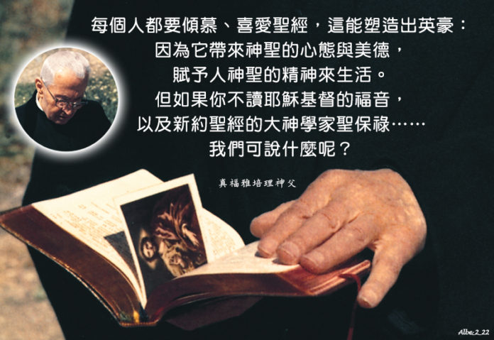 每個人都要傾慕、喜愛聖經,這能塑造出英豪:因為它帶來神聖的心態與美德,賦予人神聖的精神來生活。但如果你不讀耶穌基督的福音,以及新約聖經的大神學家聖保祿……我們可說什麼呢?