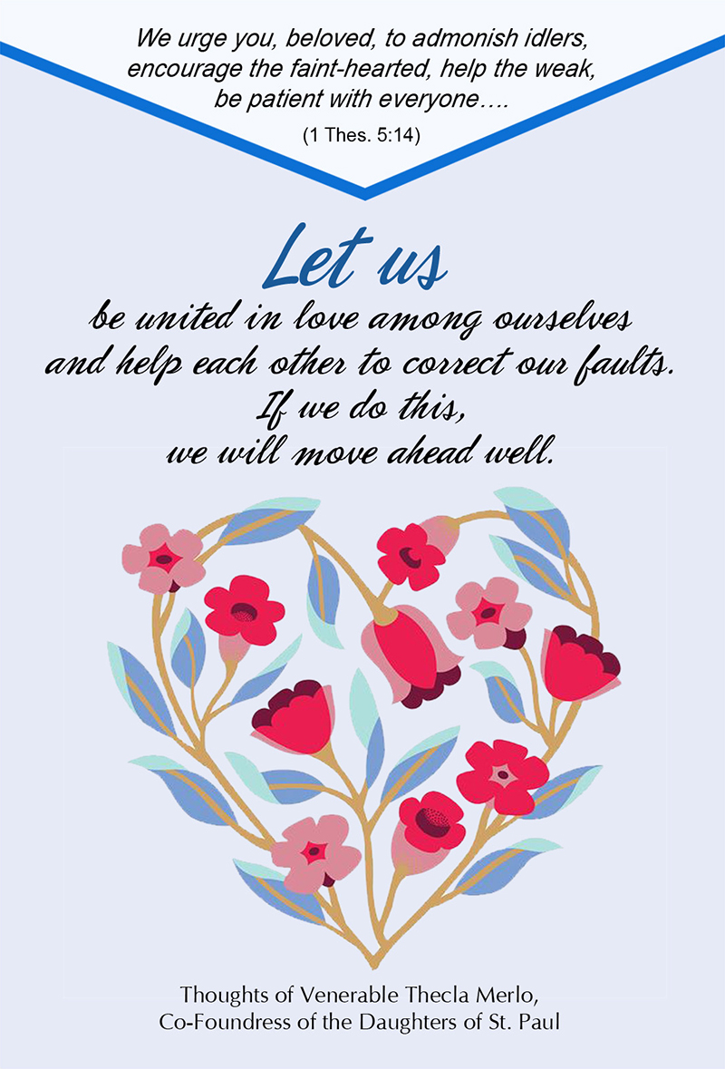 Let us be united in love among ourselves and help each other to correct our faults. If we do this, we will move ahead well.