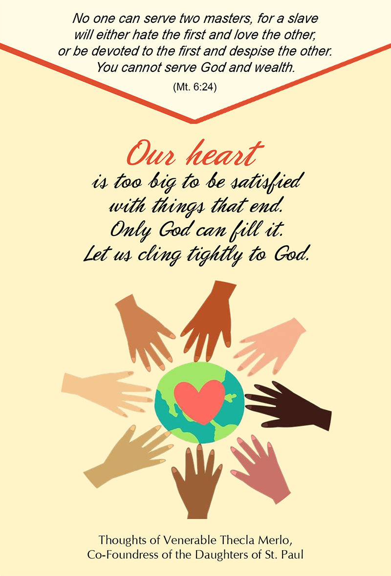 Our heart is too big to be satisfied with things that end. Only God can fill it. Let us cling tightly to God.