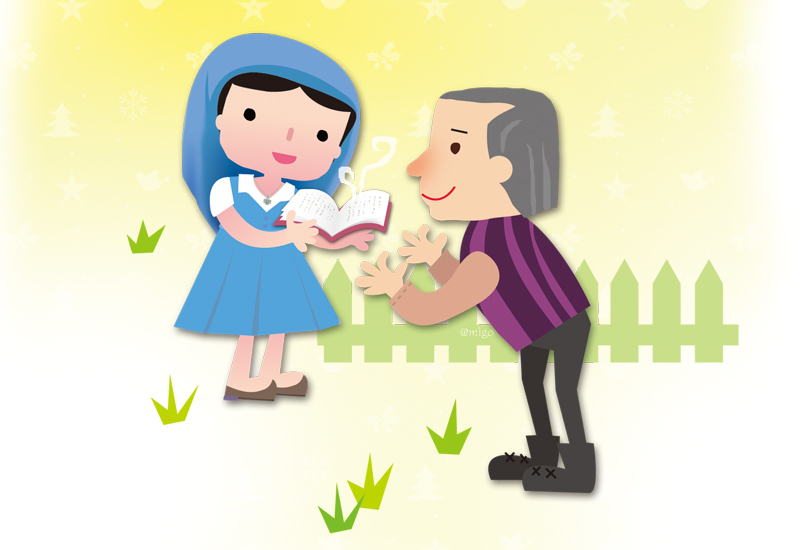—「我們知道您的困難,我們不願打擾您。只要您告訴我那一家可以過夜,當然我們會付錢。堂區教友的貧窮並不妨礙我們的工作。假如他們無法買書,我們可以免費留給他們宗教傳單,假如不在家,我們可以放在信箱內。我們的目的是給大家好的讀物。」