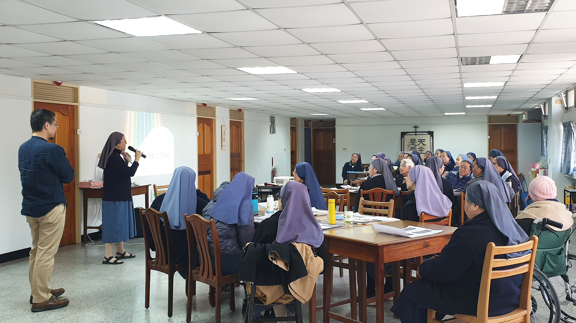 活動以一個輕鬆有趣的環節開始:觀察人與人之間不同的打招呼方式。主持人帶領修女們思考,這些看似簡單的動作,實則蘊藏著文化、習俗及個人情感表達的意義,啟發大家重新審視日常互動中的細節與深層意涵。