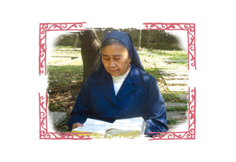 幾個月之後,我寫信給她們說:「我想當修女。」我相信那兩位修女離開之後,一直為我的聖召祈禱。修會一年內就接受我入會,我與另一位小姐到馬尼拉接受陶成。發初願之後,為累積經驗,我到分院做牧靈工作:在書局服務,拜訪家庭、學校及醫院等等,偶爾也幫忙募款。有時我們一整個月都在外面做使徒工作,沒有回去修院。我記得有一次是坐卡車到我們要去的地方,因為當時沒有其他的交通工具可以搭乘;還有一次,我們不知道河裡有鱷魚,提著包包正要涉水過河去拜訪家庭,有人問:「修女!妳們不怕鱷魚嗎?」那時我們才知道,那條河有多麼危險。